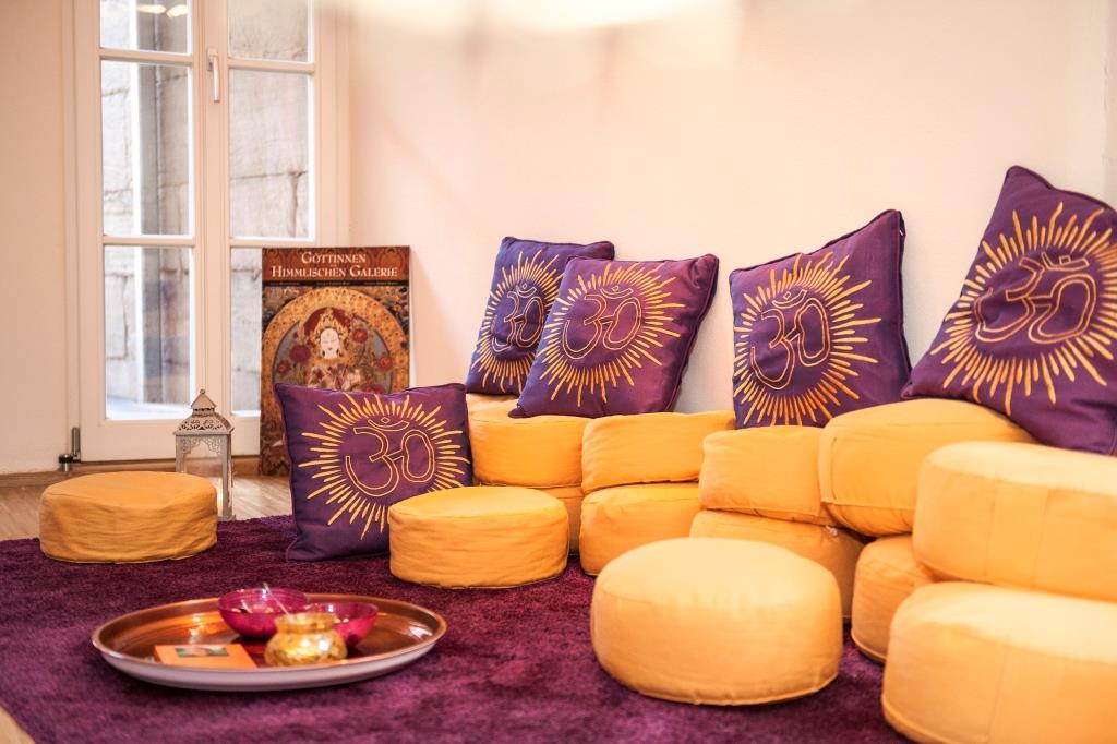 Das Studio Matsyendra besteht aus zwei Stockwerken. Im Erdgeschoss befinden sich Rezeption und Umkleide, im ersten Stock wird Yoga praktiziert. Eine gemütliche Sitzecke lädt vor den Yogastunden zu Tee und Kaffee ein.